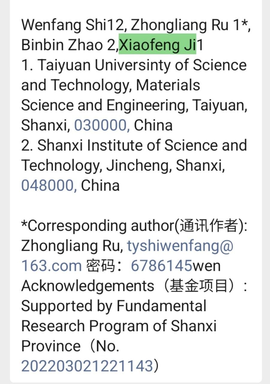 1Taiyuan University of Science and Technology, Materials Science and Engineering, Taiyuan, Shanxi, 030000, China